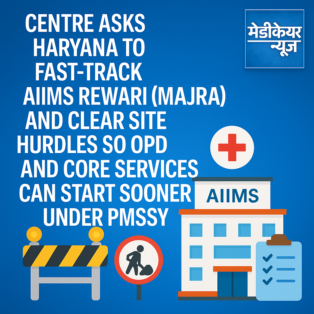 New Delhi | August 18, 2025 — The Union government has urged Haryana to speed up work on AIIMS Rewari (Majra) and resolve on-ground hurdles so the institute can open services in phases at the earliest. The nudge follows repeated reviews of the project’s timelines and package awards. It also comes as PMSSY lists the Rewari site “under construction”, alongside other upcoming AIIMS campuses. PMSSY