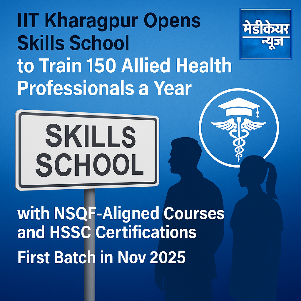 Kharagpur/New Delhi, August 18, 2025 — IIT Kharagpur has launched a new “School for Skills: Healthcare & Technology” to train young people—especially from rural and semi-urban India—for frontline roles in hospitals and clinics. The centre will start with 150 trainees a year, offer short-term, NSQF-aligned courses, and place graduates across partner facilities. The first cohort begins November 2025.