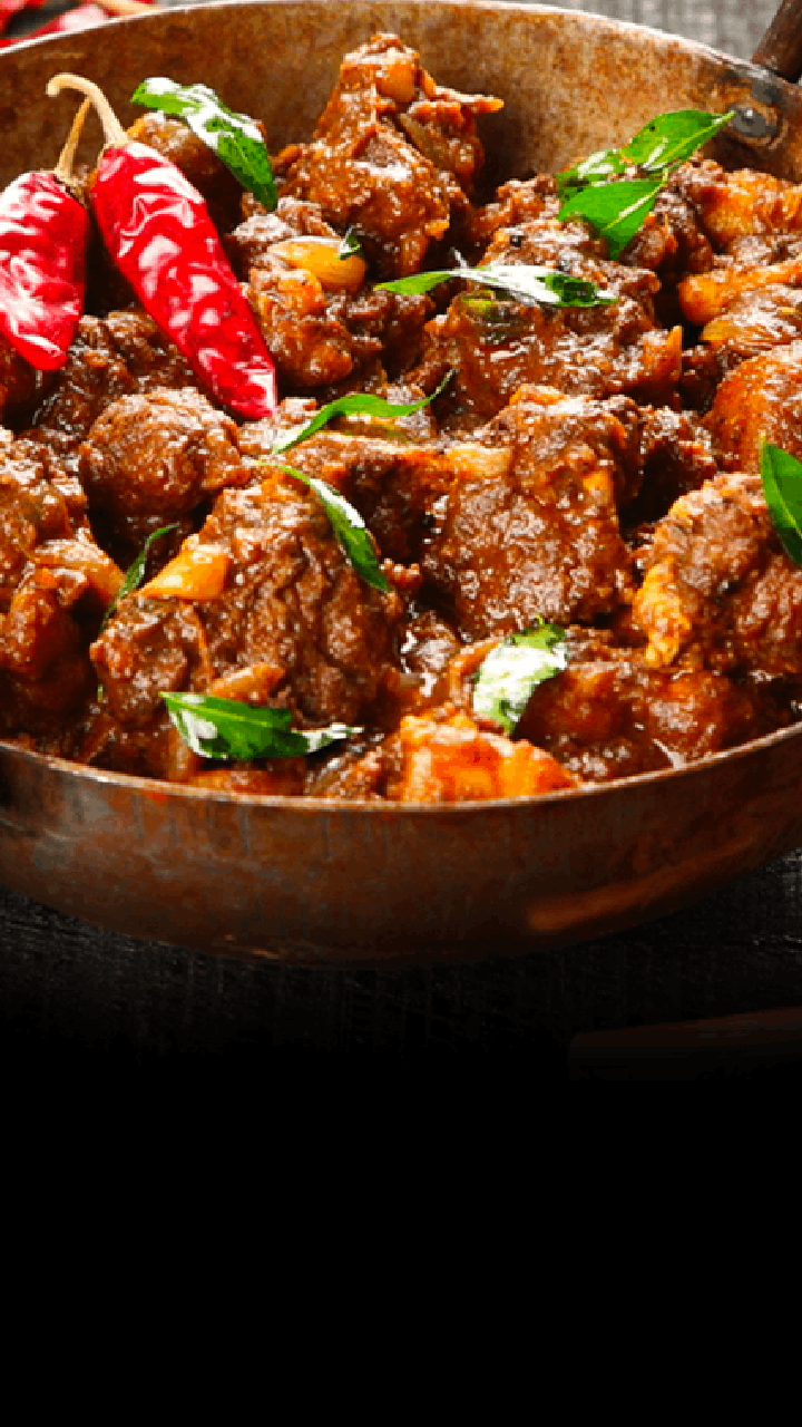 A classic Kashmiri dish with meat cooked in onions, spices, and yogurt, garnished with Kashmiri red chilies.