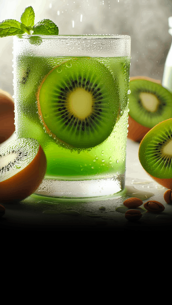 Crushed kiwis mixed with mint leaves, soda water, and a touch of lime juice, served chilled.